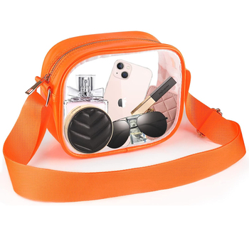 حقيبة كروس بودي نسائية شفافة مع حزام قابل للتعديل ، حقيبة حمل شفافة عصرية معتمدة من كلوريد البولي فينيل